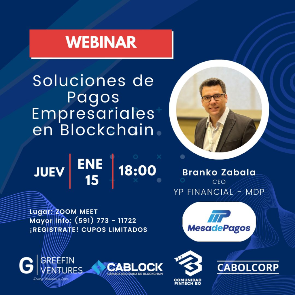 Soluciones de Pagos Empresariales en Blockchain 15 enero, 2026 Eventos y Capacitaciones,Networking y Oportunidades,Noticias,Socios y Comunidad Este jueves 15 de enero, se llevará a cabo el webinar “Soluciones de Pagos […]